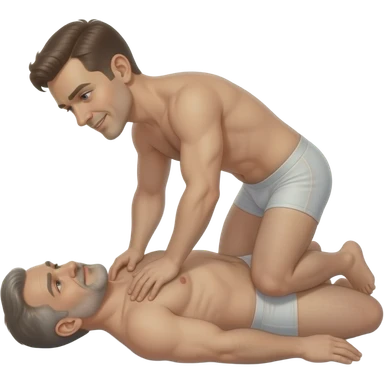A bottom gey men of age 45 with top gay men age of 25 in cowboy fuck position only undie emoji