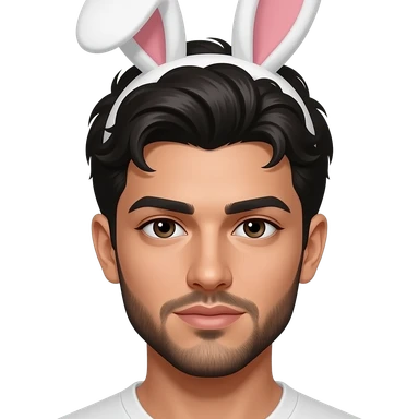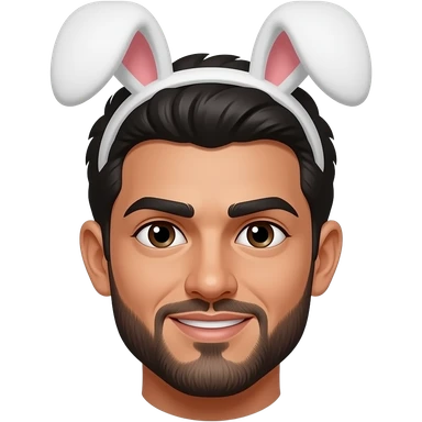 Make me an arab man with thick eyebrows and short goatee beard and eyebrow slit and hairy features with bunny ears on on top emoji