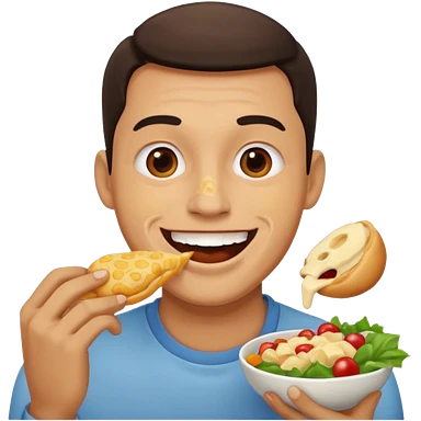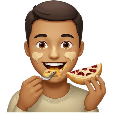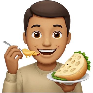 Create a sticker in which a man 6 is hand by denoting other friend that have you eaten in face emoji
