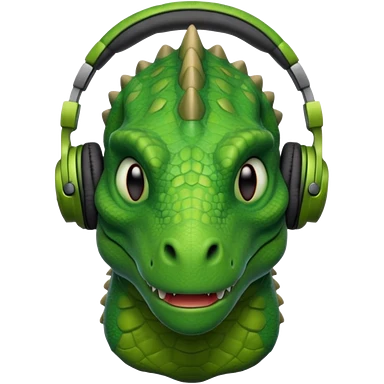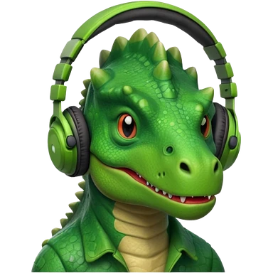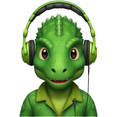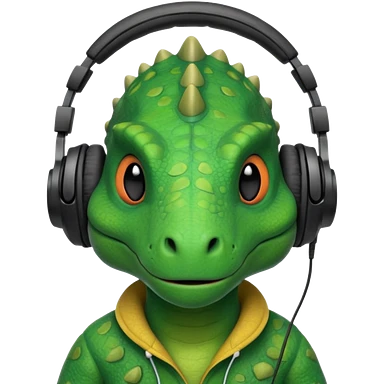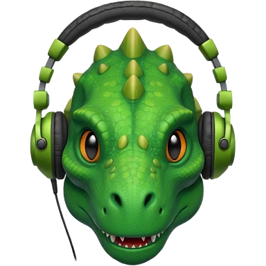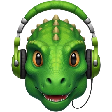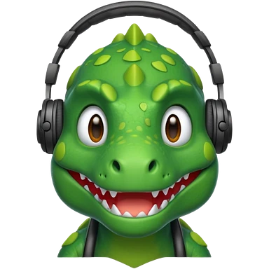 恐竜が黒いヘッドホンをつけているかわいく emoji