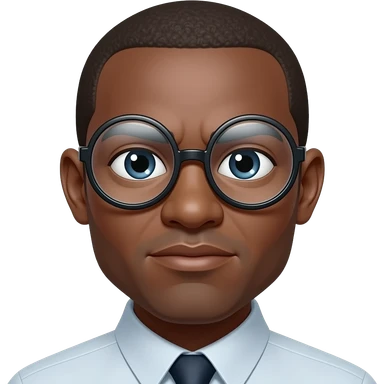 A Black man with a nerd expression, wearing magnifying glasses, and a bowl haircut emoji