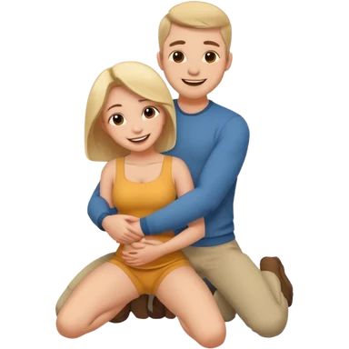 man on knees facing woman hugging her waist emoji
