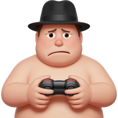morbidly obese guy holding a controler and wearing a fedora emoji