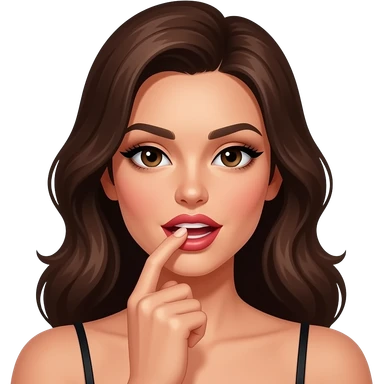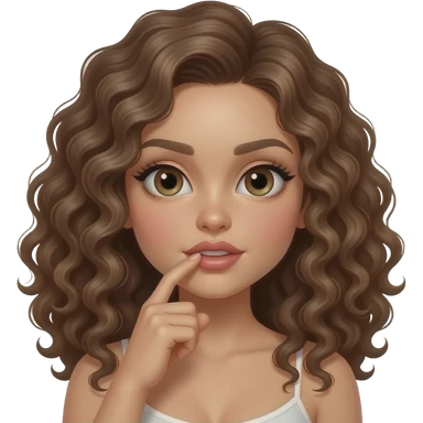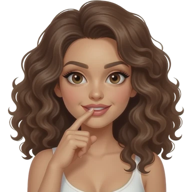 Fille brune cheveux bouclé doigt dans la bouche sexy emoji