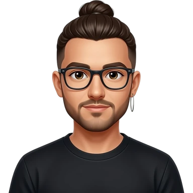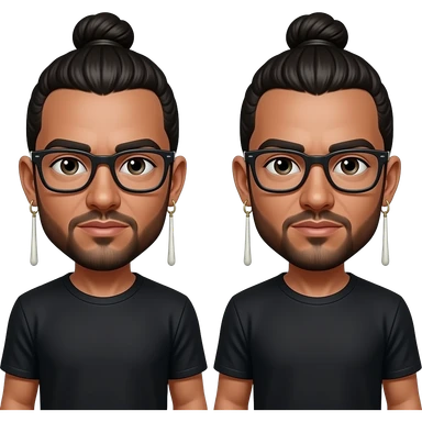 Men with a bun and glasses, long earing and black t-shirt emoji