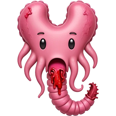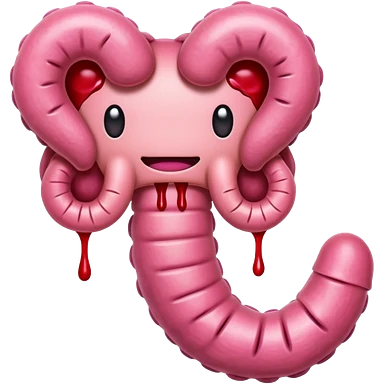 an emoji style image of the intestinal system (starting with the esophagus and ending with the rectum) like in an anatomy book but with bleeding from the rectum. emoji
