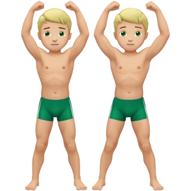 Little boy in green swim briefs flexing his arms and bending his knees emoji