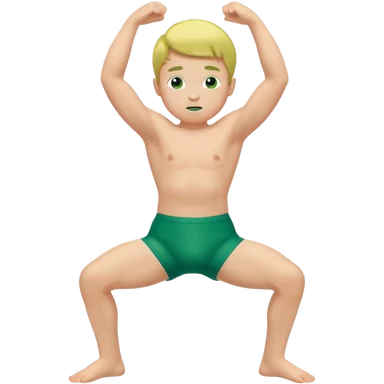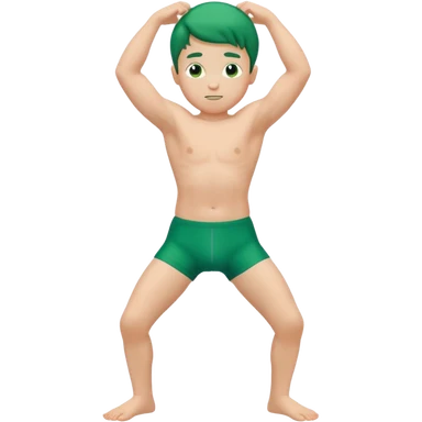 Little boy in a green speedo flexing his arms and bending his knees emoji