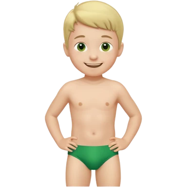 Little boy in green swim briefs emoji
