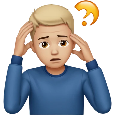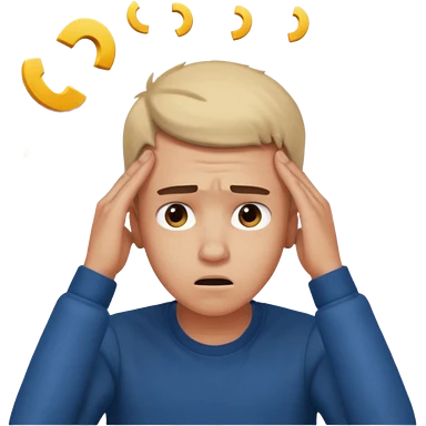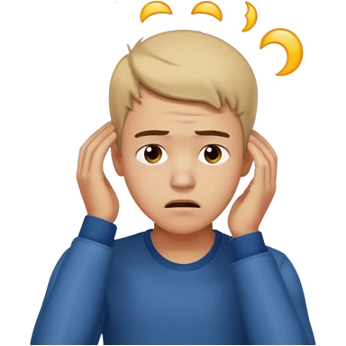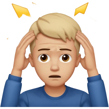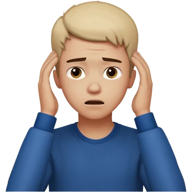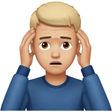 A frustrated young man holding his head, confused expression, dramatic lighting, blurred dark background, cinematic YouTube intro style, ultra-realistic. emoji