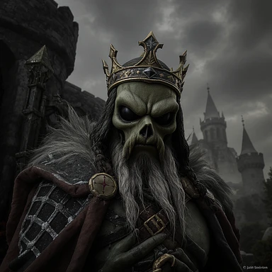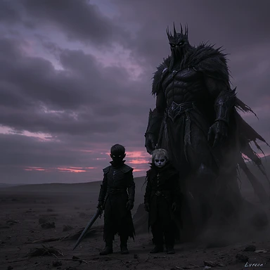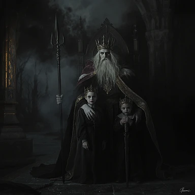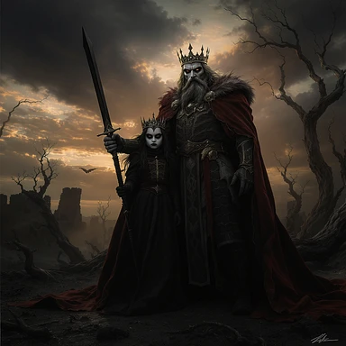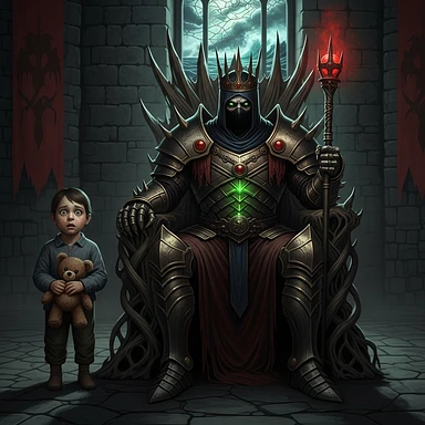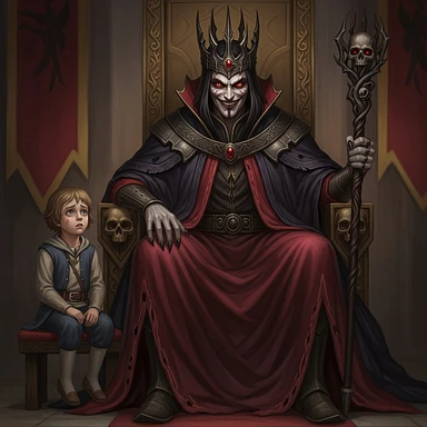 change only the king in first image with the sinister king in second image, and keep the same child on the left in the new image emoji