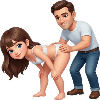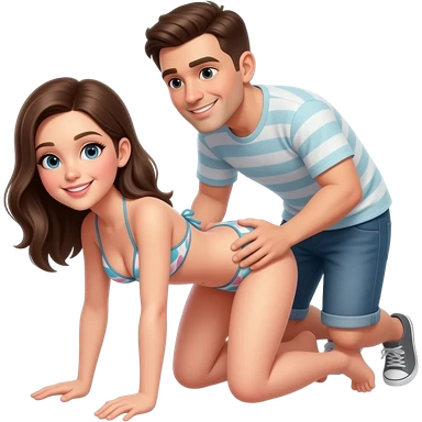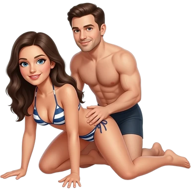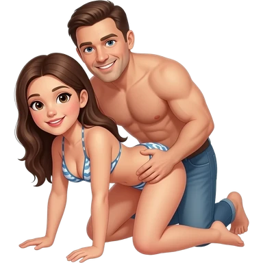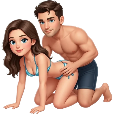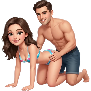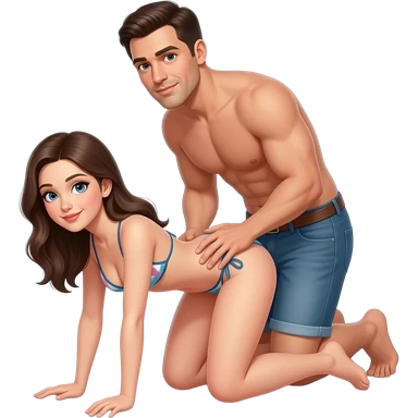 Fille à quatre pattes en bikiniAvec un homme qui tiens ses hanches derrière elle emoji