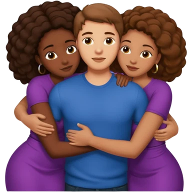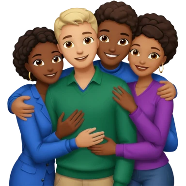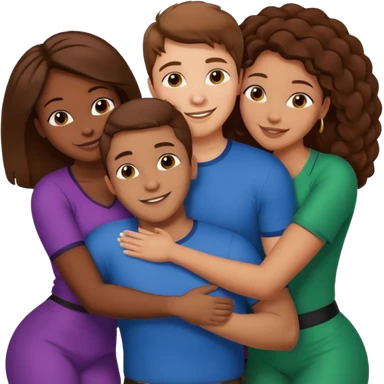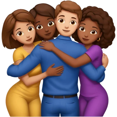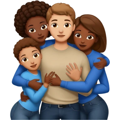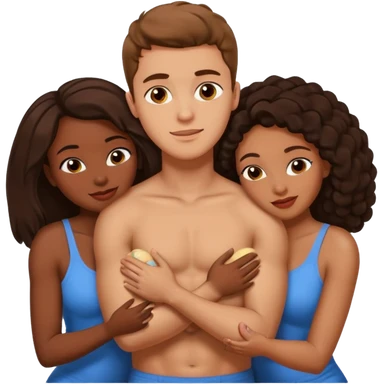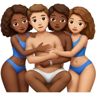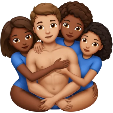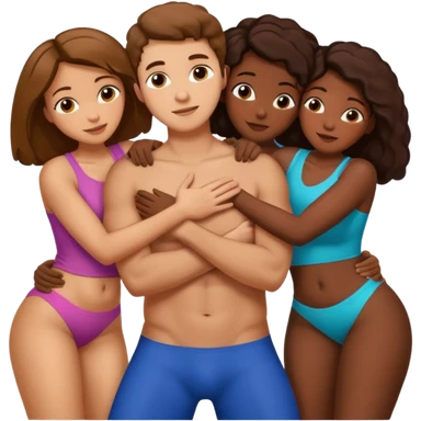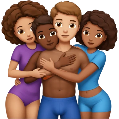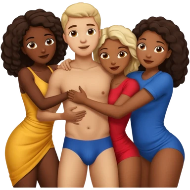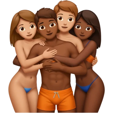 one american italian young brown-haired man surrounded by three african women with large butts hugging him and each other and massaging his crotch emoji