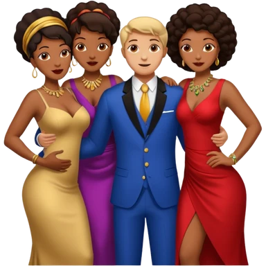 one american italian young man surrounded by three african women with large butts hugging him and each other and grabbing his crotch emoji