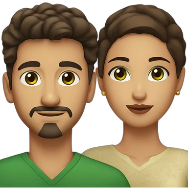 A couple of one man with dark short hair, a goatee and brown eyes and a Moroccan woman with brown hair and green eyes, they are both 20 years old emoji