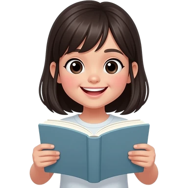 teenage girl reading a book looking happy, asian skin emoji