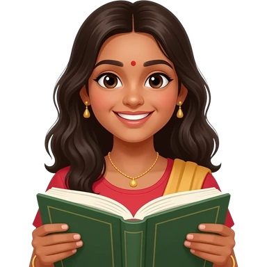 teenage girl reading a book looking happy, indian skin emoji