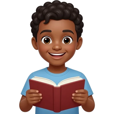 black skin teenage boy reading a book looking happy emoji