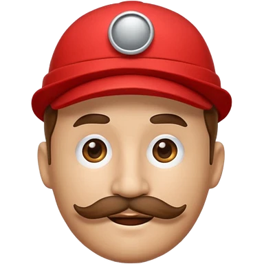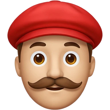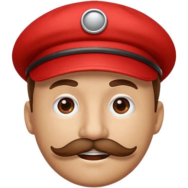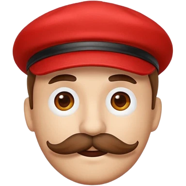 round emoji face with big brown mustache and red cap with white circle emblem, 3D emoji style, 1:1 emoji