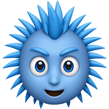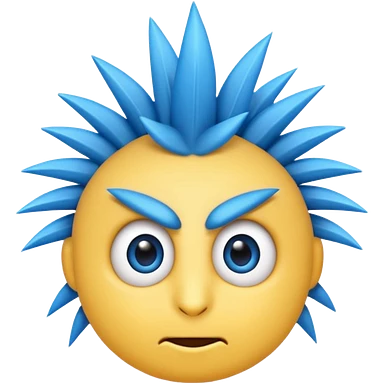 blue emoji face with sharp quill hair spikes and big white eyes, 3D emoji style, 1:1 emoji