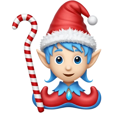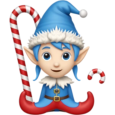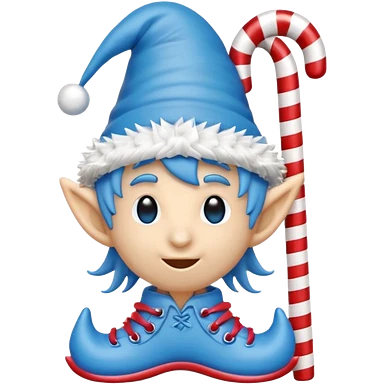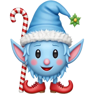 blue emoji creature with elf hat, small quills, candy-cane shoes, 3D emoji style, 1:1 emoji