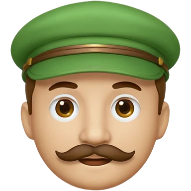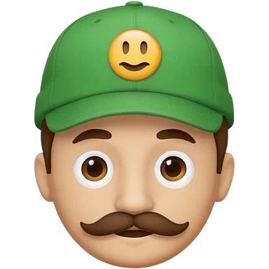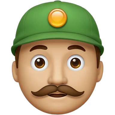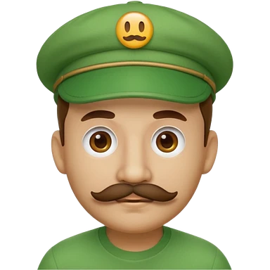 round emoji face with brown mustache and green cap with white circle emblem, 3D emoji style, 1:1 emoji