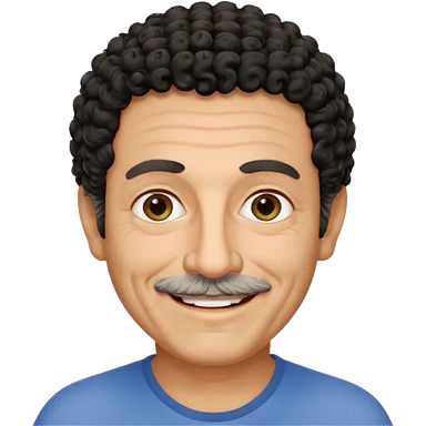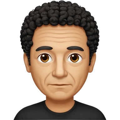 60 year old Greek man with short black curly hair that sticks up and has a black shirt emoji