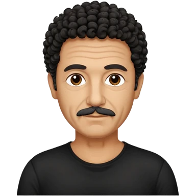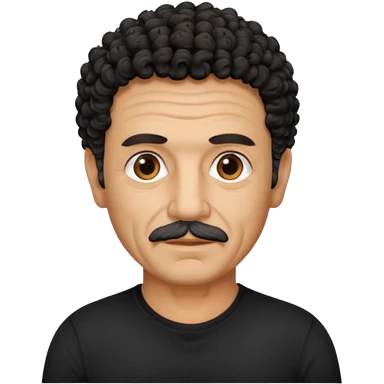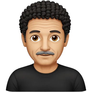 60 year old Greek man with short black curly frizzy hair that sticks up and has a black shirt emoji