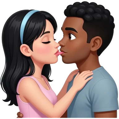 skinny young white woman with long straight black hair, fully nude, doggy style sex with a young slightly tanned mulatto man with short straight black hair, both completely naked, explicit penetration, detailed realistic style, high resolution emoji