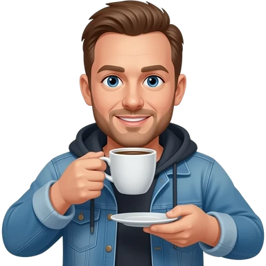 white man in his 60's wearing a blue button down shirt and smaller eyes drinking a cup of coffee emoji