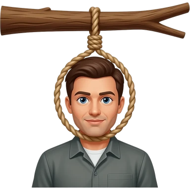 A man being hung by a noose around his neck from a tree branch emoji