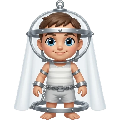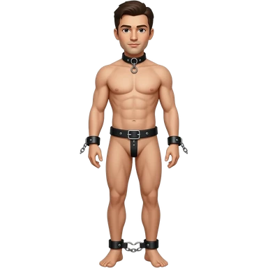 A man not wearing anything except for a tiny chastity cage showing from head to toe emoji