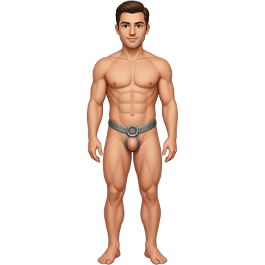 A full body of a man from head to toe With no clothes on wearing a flat Chasity cage emoji
