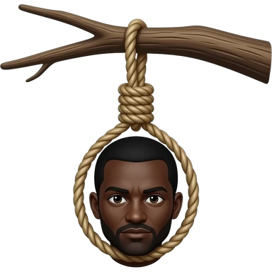 A dead black man being hung by a noose around his neck from a tree branch emoji