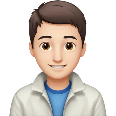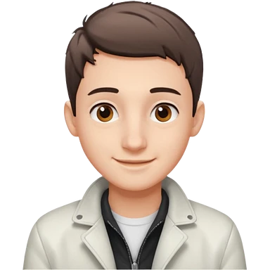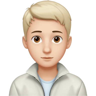 teenage man with very short gradient hair, brown eyes and long lashes, big nose and he is wear a white jacket emoji