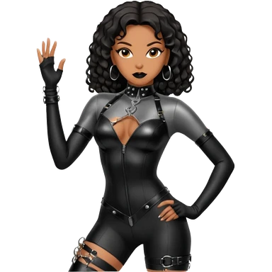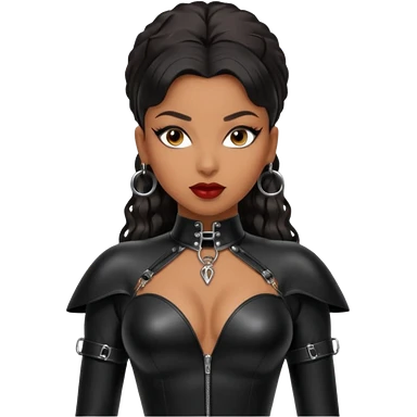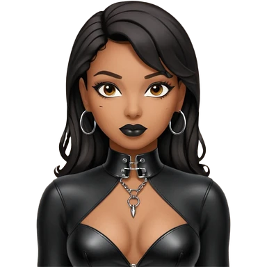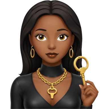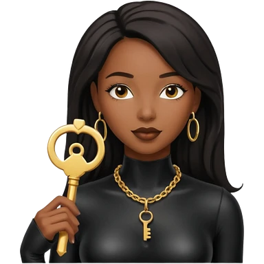 Moi belle femme métisse noire Dominatrice vêtue de Noir Cuir Latex sexy clé doré au cou emoji