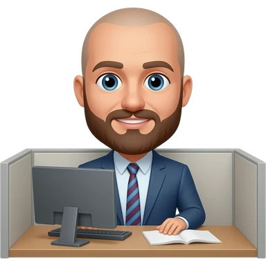make an emoji of a bald guy with a brown beard standing on his desk in his cubicle emoji