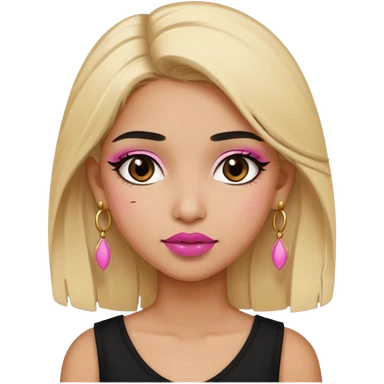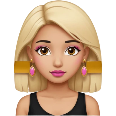 Sweet Indian girl blond hair brown eyes brown/pink lipstick pink blush black top gold earrings emoji