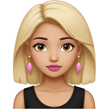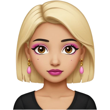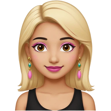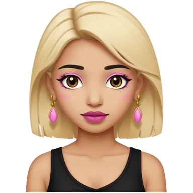Sweet Indian girl blond hair black eyes brown/pink lipstick pink blush black top gold earrings brown eyebrows emoji