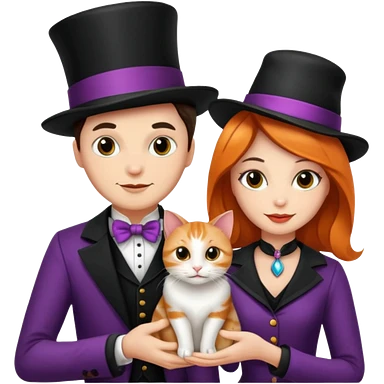 magician couple and their pet cat emoji
