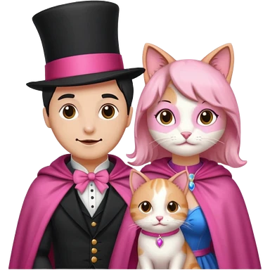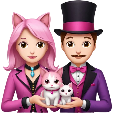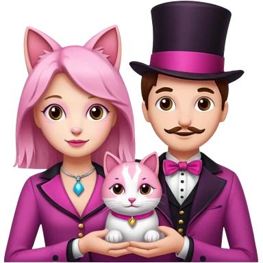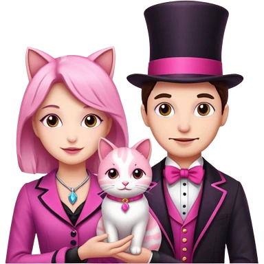 magician couple and their pet pink poopcat emoji