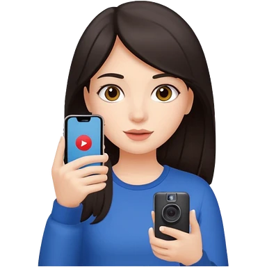 quiero crear una chica con una movil como si estuviese grabando cosas como si estuviese grabando vlog con el pelo oscuro emoji