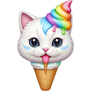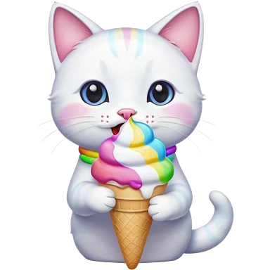 A cute white cat licking a colorful. Ice cream emoji