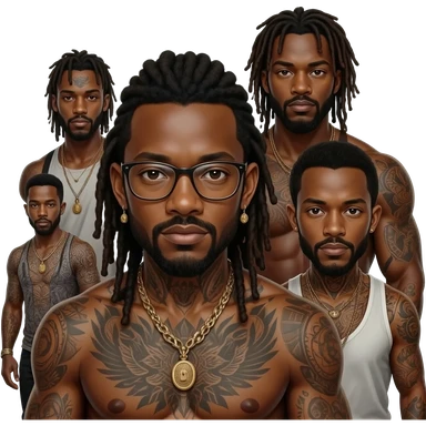 Groupes d'hommes afro américains avec des tattouage et des dreadloks emoji