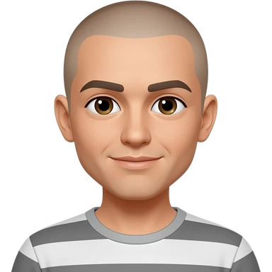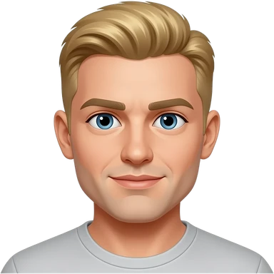 Blonde man, Short Hair almost Shaved, with beard, Blue eyes, more shaved hait on same height and iphone emoji kinda emoji