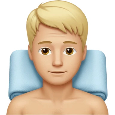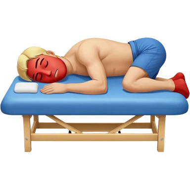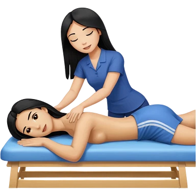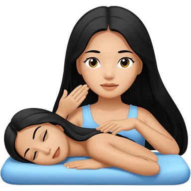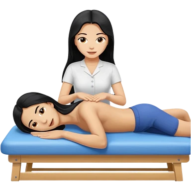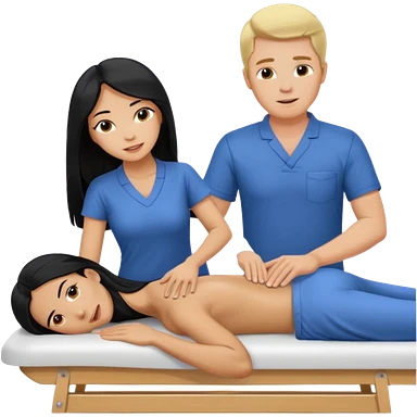 Philippines woman with long hair is on massage table. a blond white man is massaging her emoji