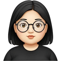 chubby asian waman wear circle glasses medium black hair wear black shirt emoji