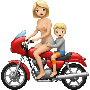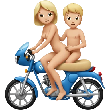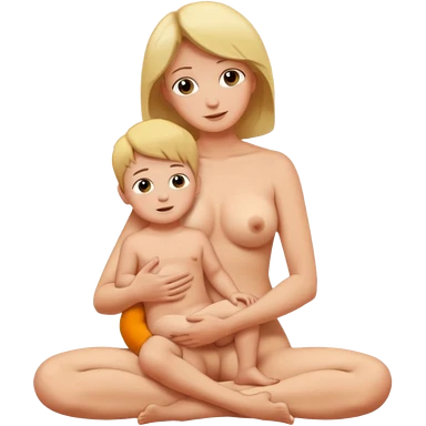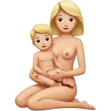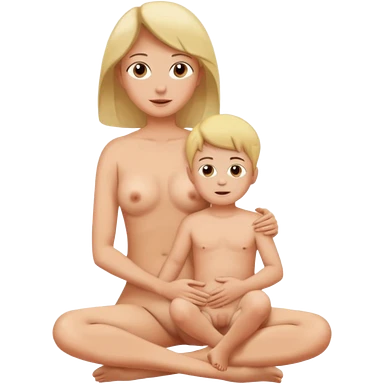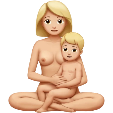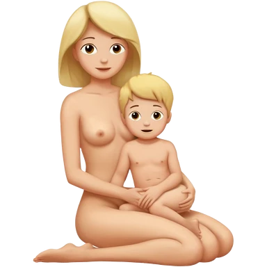 A mom and small son naked full body while mom is sitting on top of her son's lap emoji