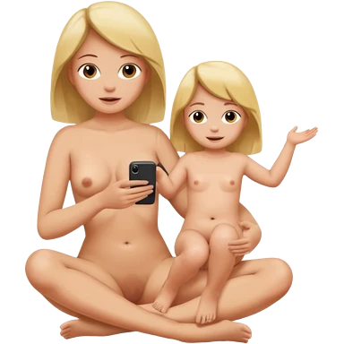 A mom and small daughter sitting naked and spreading legs showing pussy emoji