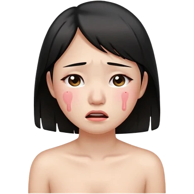 An asian girl standing naked in public crying blush emoji